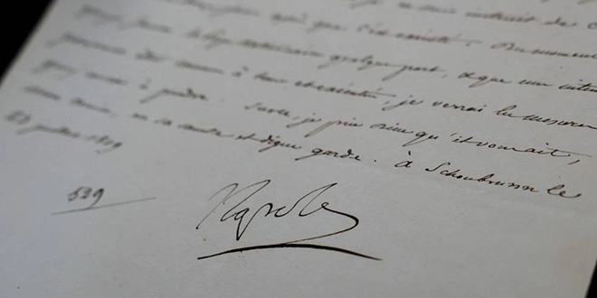 كانت هذه الرسالة المؤرخة في1809، والتي شُطِبَ بعض مضمونها، وتحمل توقيع «نابول»، وهو على الأرجح تصغير لنابليون، بمثابة «مناورة سياسية». وقُدِّر سعرها بما يتراوح بين 12 ألف يورو و15 ألفاً، وفق لجان كريستوف شاتينييه، الشريك في الدار ومدير قسم «الإمبراطورية» فيها.