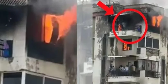 وفي لقطات سابقة لمشهد القفز المفجع، كان الأب وطفلاه يقفون على حافة الشرفة بينما كانت النيران تشتعل بقوة وتتصاعد من النوافذ خلفهم، وفجأة قفز أحدهم، فتبعه الآخران، في محاولة يائسة للنجاة من ألسنة اللهب والدخان الكثيف، قبل أن يصطدم أحدهم بحافة في الطابق السفلي.