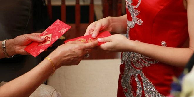 ويُعتبر تقديم المغلفات الحمراء تقليداً شائعاً في العديد من الثقافات الإفريقية والآسيوية، حيث يمنح الضيوف مبالغ مالية للعروسين كنوع من التهنئة والمساهمة في مصاريف الزفاف، وغالباً ما توضع هذه المغلفات في صناديق عند مدخل قاعة الاحتفال.