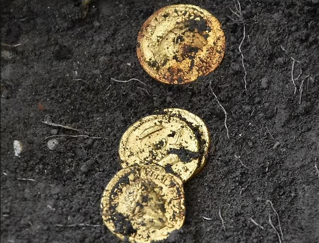وعثر العلماء على عدد من الأشياء داخل الغرفة، بما في ذلك كرسي، وصندوق، وطاولة بسطح رخامي وحامل شمع من البرونز، وعلى عملات ذهبية، وفضية وبرونزية، بالإضافة إلى أقراط من اللؤلؤ ومجوهرات أخرى.