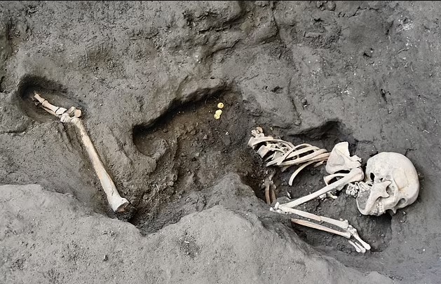 عثر علماء آثار إيطاليون، على رفات شاب وامرأة مسنة بالموقع التاريخي لمدينة مومبي الأثرية، لقيا حتفهما بعد ثوران بركان جبل فيزوف قبل ألفي عام، تحيط بهما عملات ذهبية، ومجوهرات، وجدوها أثناء عمليات التنقيب داخل غرفة نوم صغيرة في فيلا كانت تخضع لإعادة البناء.