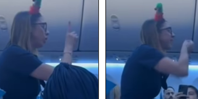وقالت المضيفة بصوت عال: أن “كفى، هذه رحلة عائلية، أغلقوا أفواهكم، إذا سمعت تعليقاً آخر من أي شخص، فسأتصل بالطيارين وسيستدعون الشرطة، لقد سئمت”.