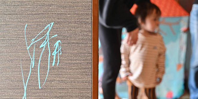 وفي المنزل الواقع في الضواحي حيث تعيش هذه الطفلة البالغة 21 شهراً، تضفي بقع ملوّنة طابعاً حيوياً على حصائر تاتامي يابانية. وبجانبها، تساعدها والدتها بصبر لفتح أغطية أنابيب التلوين ونشرها على الورق.