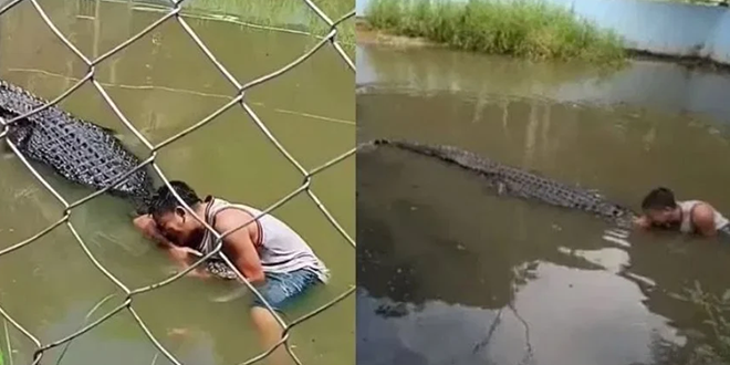 لكن التمساح، البالغ طوله نحو 4.5 أمتار، انقضّ فجأة على الرجل وعضّه في ذراعه، ثم أمسك بفخذه وبدأ في تنفيذ حركة “الدوران القاتل” التي تستخدمها التماسيح لتمزيق فرائسها.