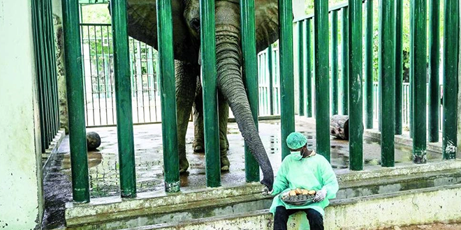 يستيقظ محوت علي بلوش باكراً كل يوم لطهي الأرز والعدس ممزوجين بكمية كبيرة من دبس قصب السكر، ليشكّل بعدها الخليط على هيئة عشرات الكرات التي يحشو فيها أقراص الدواء. وقال الشاب البالغ 22 عاماً، وهو يراقب الفيلين خلال رشهما بالمياه من أحد الخراطيم للحفاظ على برودتها «أعلم أن الأقراص مُرّة».