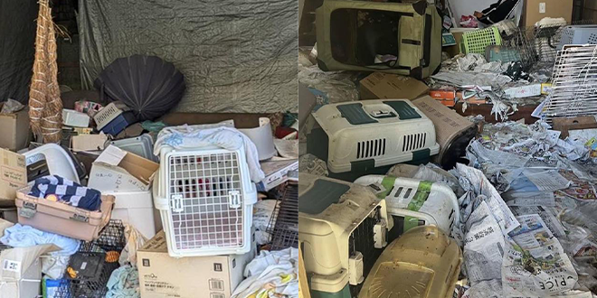 وعُثر على 12 قطة لا تزال على قيد الحياة، وسط حالة الفوضى في المنزل، بحسب تسوتومو تاكيموتو، رئيس مركز حماية الحيوانات في المدينة.