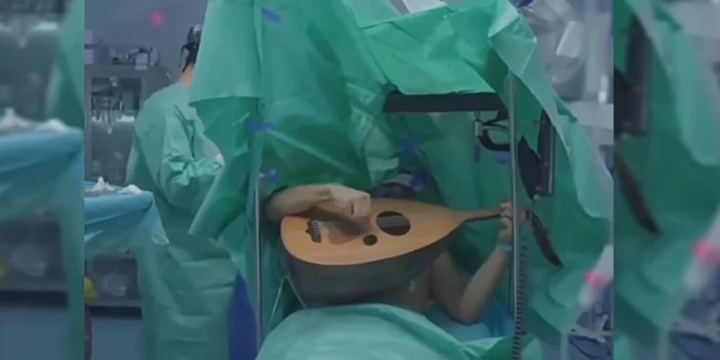 وتداولت منصات التواصل الاجتماعي مقطع فيديو وثّق تلك اللحظة الفريدة، إذ ظهر المريض وهو يعزف ببراعة على العود ويغني “رجعوني عنيك” لكوكب الشرق أم كلثوم، في الوقت الذي كان الأطباء يجرون فيه العملية بحذر شديد، ما أضفى على المشهد مزيجاً مدهشاً من الفن والطب.