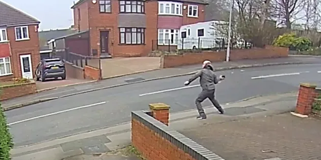 لكن اللص “الأبله” لم يهرب بهدوء، بل ألقى حجارة وقطعاً خرسانية على الضحية، حتى أنه التقط عصاً وضرب بها أحد السكان في بطنه، وفق ما وثقته كاميرات المراقبة في شارع وينغفيلد أفينيو.