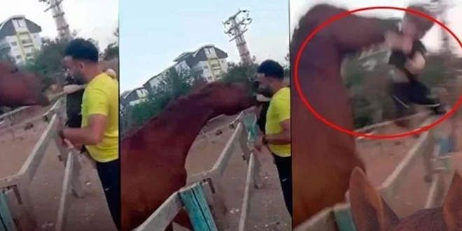 شهدت ولاية أنطاليا التركية واقعة صادمة، حين أقدم حصان على عض طفل يبلغ من العمر 3 سنوات بينما كان في حضن والده، ثم رفعه في الهواء لمسافة تجاوزت ثلاثة أمتار، في مشهد مروع وثقته عدسة هاتف محمول.