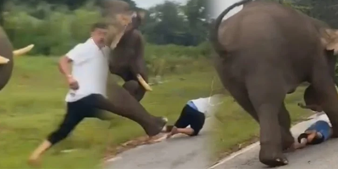 وأثناء محاولته الهرب، سقط السائح على الأرض، وتمكن الفيل من الإمساك به ودهسه عدة مرات، حتى نزع عنه ملابسه، وبعد دقائق، توقّف الفيل وابتعد، ما أتاح للسائح النهوض والفرار إلى مكان آمن.