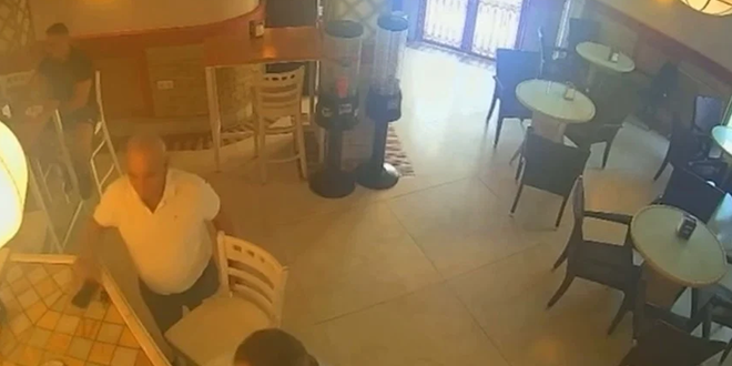 وأظهرت لقطات كاميرات المراقبة الرجل الغاضب وهو يغادر المقهى قبل أن يتوجّه إلى محطة وقود على بعد نحو خمسين متراً، ليعود لاحقاً حاملاً زجاجة تحتوي على البنزين ويطلب مرة أخرى الصلصة، وعندما تأكد من عدم توافرها صبّ البنزين على المكان وأشعل النار فيه.