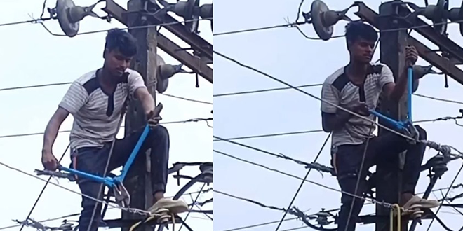ضجّت مواقع التواصل الاجتماعي بمقطع فيديو يظهر فيه شاب هندي خلال تسلقه عمود كهرباء، قيل إنه قطع التيار عن قريته بسبب انشغال خط هاتف حبيبته.