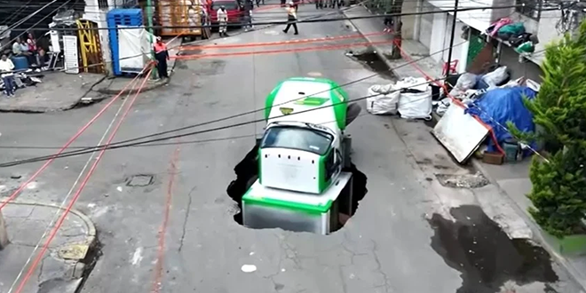 شهدت منطقة إزتابالابا، أكثر أحياء مكسيكو سيتي كثافة سكانية، حادثة سقوط شاحنة محملة بزجاجات صودا في حفرة أرضية كبيرة، دون وقوع أي إصابات بين السائقين أو المارة، وفق ما نقلته وسائل الإعلام المحلية.
