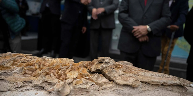 عُثر على الحفرية التي يبلغ طولها 3,5 أمتار في يوليو(تموز) من جانب عالم الحفريات البيروفي ماريو أوربينا في صحراء أوكوكاخي على بُعد حوالى 350 كيلومتراً جنوب العاصمة ليما.