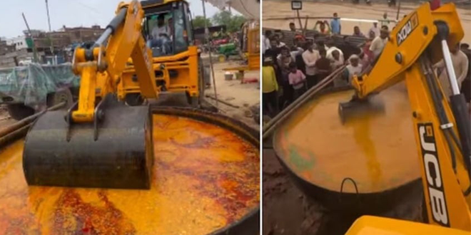 ضجّت مواقع التواصل الاجتماعي خلال الساعات الماضية بمقطع فيديو غريب أثار تفاعلاً واسعاً، حيث ظهرت فيه جرافة من نوع JCB، وهي تقوم بمهمة غير متوقعة تماماً، إذ استُخدمت كملعقة عملاقة لتحريك قدر ضخم من طبق “دال مَخني” الهندي الشهير.