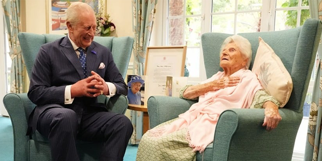 التقى الملك تشارلز الثالث بأكبر معمّرة في العالم، السيدة البريطانية إيثيل كاترهام، التي تبلغ من العمر 116 عاماً، في زيارة ودية حملت الكثير من الحنين والذكريات.