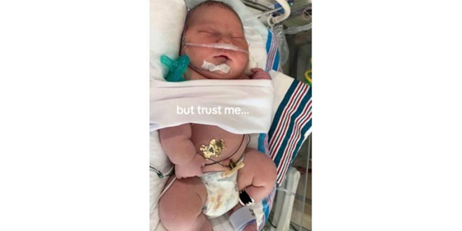 وفي سياق متصل، نشرت جدة الطفل على حسابها في «إنستغرام» تفاصيل عن وضعه الصحي، حيث أُدخل كاسيان وحدة العناية المركزة لحديثي الولادة بعد ولادته القيصرية مباشرةً، مشيرة إلى ضرورة مراقبة مستويات الجلوكوز المرتفعة التي قد يعاني منها الأطفال ذوو الحجم الكبير، وأكدت أنه يبقى تحت المراقبة المستمرة.