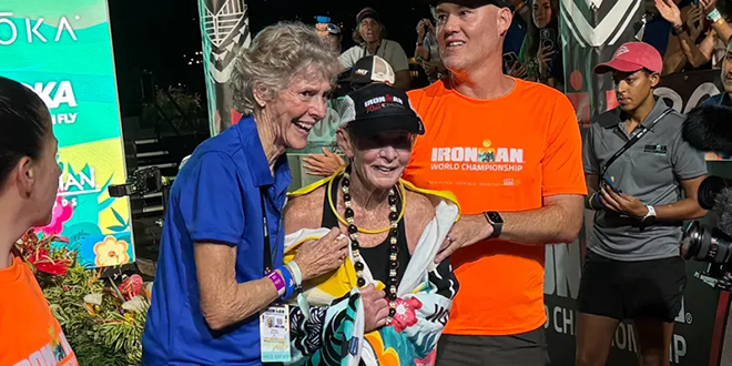 ناتالي غرابو، القادمة من ولاية نيوجيرسي، خاضت التحدي الثلاثي الذي يتضمن سباحة لمسافة 3.8 كيلومتر، وركوب دراجات لمسافة 180 كيلومتراً، ثم جري ماراثوني لمسافة 42 كيلومتراً، وأنهته بزمن قدره 16 ساعة و45 دقيقة و26 ثانية، متوجة بالمركز الأول لفئة السيدات من 80 إلى 84 عاماً، في مشاركتها العاشرة في هذا الحدث الرياضي الأشهر.