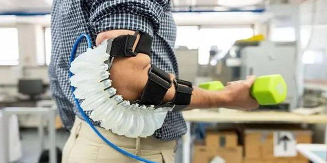 طور باحثون أمريكيون من جامعة تكساس في أرلينغتون، هيكلاً روبوتياً مرناً أطلقوا عليه اسم الهيكل الخارجي اللين للكوع، لمساعدة العمال في المصانع والمستودعات على تقليل الجهد البدني وتفادي الإصابات العضلية الهيكلية المكلفة التي تستغرق أسابيع للشفاء.