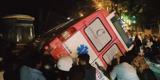 وأظهرت مقاطع فيديو من موقع الحادث حالة من الفوضى والهلع، إذ هرع المارة لمحاولة رفع سيارة الإسعاف بعد أن تحطمت في مخفر الشرطة، وسط مشهد تتناثر فيه الدراجات النارية المتضررة.