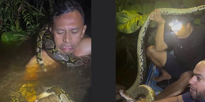 نجا الإندونيسي هيرو الذي يعمل مرشداً سياحياً من الموت بأعجوبة، بعد أن التف ثعبان ضخم يبلغ طوله 6 أمتار حول رقبته، أثناء رحلة عبر نهر في جزيرة بورنيو.