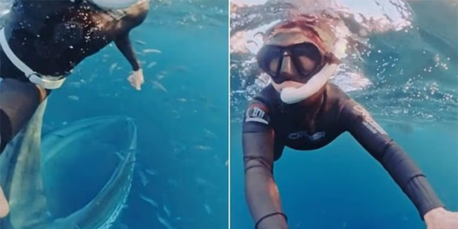 وكانت المرأة تمارس رياضة الغوص الحر، وتراقب الحياة البحرية بهدوء، عندما اتجه إليها المخلوق الضخم فجأةً وسبح نحوها مباشرةً بسرعة، فيما هربت أسراب من السمك الصغير.