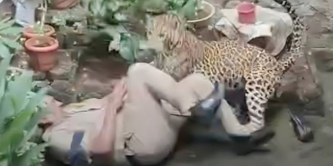 وثّق مقطع فيديو متداول، هجوم فهد على شرطيين أثناء عملية إنقاذ في منطقة ناغالا بارك بمدينة كولهابور الهندية، ما أدى لإصابتهما.