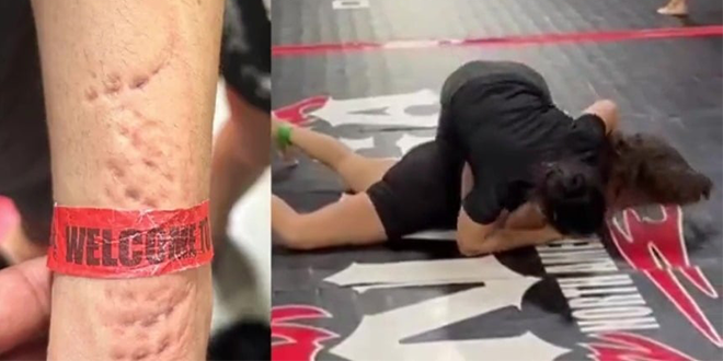 واكتشفت اللاعبة بعد انتهاء التثبيت على الأرض وجود علامات عض عميقة على ساعدها، وأظهرت الصور التي شاركتها على وسائل التواصل الاجتماعي مدى قوة الإصابة.