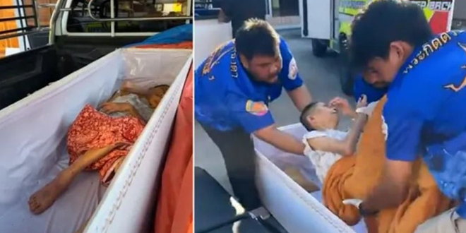 فاجأت سيدة تايلاندية تبلغ من العمر 65 عاماً عائلتها والعاملين في أحد المعابد، بعدما تحركت داخل تابوتها قبل لحظات من بدء مراسم حرق جثمانها، رغم اعتقاد أسرتها أنها توفيت قبل يومين.