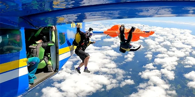 وواصل 3 من المظليين في النادي قفزتهم المخطط لها، فيما ظل المظلي المتضرّر معلقاً تحت هيكل الطائرة، في وضع شديد الخطورة.