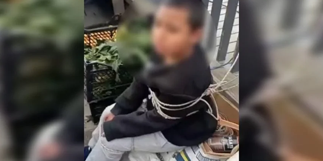 أشعل مقطع فيديو متداول على مواقع التواصل الاجتماعي موجة جدل واسعة في تركيا، بعدما أظهر أحد التجار وهو يربط طفلاً بالحبال داخل أحد أسواق إسطنبول، عقب اتهامه بسرقة بنطال رياضي من أحد الأكشاك.