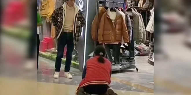 ويُظهر الفيديو، الذي جرى تصويره أمام أحد متاجر الملابس في مركز تسوق بمدينة شياوغان، بمقاطعة هوبي الصينية، المرأة وهي تجثو على ركبتيها، تتوسل إلى زوجها كي يشتري لها سترة من الريش الصناعي بسعر 299 يوان (حوالي 40 دولاراً أمريكياً)، بينما يوبخها الزوج لعدة دقائق، وفق ما ذكرته وسائل إعلام محلية.