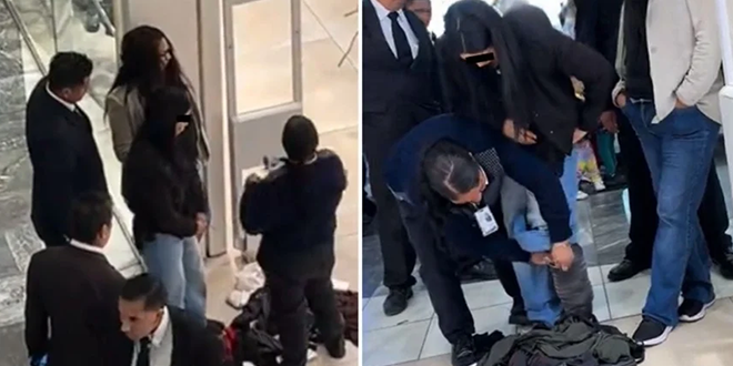 وأظهرت مقاطع فيديو جرى تداولها على مواقع التواصل الاجتماعي لحظة ضبط إحدى المتهمتين، حيث قام إحدى السيدات ضمن فريق الأمن بإخراج عدة قطع ملابس كانت مخبأة أسفل ملابسها، وتحديداً تحت البنطال.