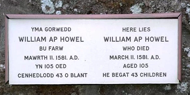 سجّل ويليام هاول، الرجل الذي عاش في قرية تريغايان شمال غرب ويلز، رقماً استثنائياً بعدما أصبح أباً لـ43 طفلًا من خمس نساء خلال حياته التي امتدت 105 أعوام، ما غيّر بشكل كبير ديموغرافية هذه القرية التي كان تعداد سكانها حوالي 80 نسمة في زمنه.