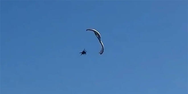 وأظهرت لقطات من كاميرات الشرطة لاحقاً بقايا المظلة الممزقة ومعدات الطيران متناثرة على الشاطئ، فيما بدا المظلي في حالة صدمة، يشكو فقط من فقدان هاتفه المحمول الذي غرق في البحر.