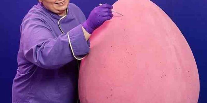 وأوضحت: «البيضة السابقة التي عرضت في 2025 كانت بطول 90 سنتيمتراً ووزنها 45 كيلوغراماً، أي تقريباً بارتفاع طائر البطريق الإمبراطور، وصنعت بالكامل من الشوكولاتة».