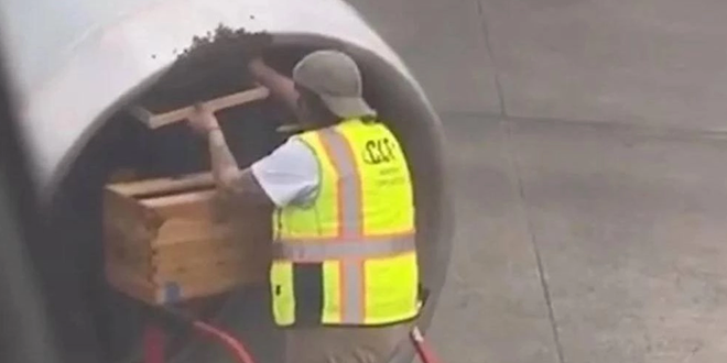 تسبب سرب من النحل في تأخير طائرة تابعة لشركة الخطوط الجوية الأمريكية كانت تستعد للمغادرة من مطار في ولاية كارولينا الشمالية الأمريكية، وذلك بعد أن تجمع على غطاء محرك الطائرة التوربيني.