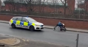 يظهر مقطع فيديو سيارة شرطة بريطانية في مدينة شيفيلد، يوركشاير تحاول إيقاف امرأة على كرسي متحرك كهربائي، بعد تلقي بلاغ عن حادثة سرقة متجر. وكانت المرأة 33 عاماً، هربت من المتجر على كرسي متحرك كهربائي، بعد أن سرقت سلعاً ثمينة. ونجحت المرأة في البداية بمرواغة سيارة الشرطة، والإفلات بكرسيها المتحرك خلال المطاردة، وسط محاولات الضباط إيقافها مرتين، لكنها استمرت بالمناورة …