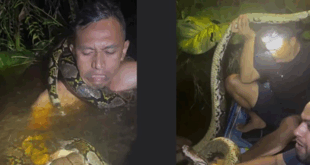 نجا الإندونيسي هيرو الذي يعمل مرشداً سياحياً من الموت بأعجوبة، بعد أن التف ثعبان ضخم يبلغ طوله 6 أمتار حول رقبته، أثناء رحلة عبر نهر في جزيرة بورنيو. كان هيرو وهو صائد ثعابين ذو خبرة، برفقة مجموعة سياحية، عندما لاحظ ثعباناً ضخماً يستريح قرب ضفة النهر، قبل أن يمد يده إلى الماء ويمسك برأسه. وفي لحظات مرعبة، سحبه الثعبان إلى …