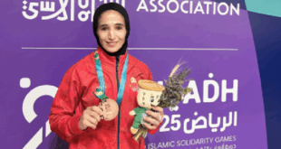 أحرزت البطلة المغربية سمية إيراوي، مساء اليوم السبت، الميدالية البرونزية في منافسات رياضة الجيدو، وذلك بقاعة القتال “ملاز” في الرياض، ضمن دورة ألعاب التضامن الإسلامي، التي تستمر إلى غاية 22 نونبر الجاري. وجاء فوز إيراوي في وزن أقل من 52 كلغ، على الكازاخية تولغناي أبيوفا في نزال تحديد المركز الثالث. وكانت البطلة المغربية قد تفوقت في النزال الأول على التركية …