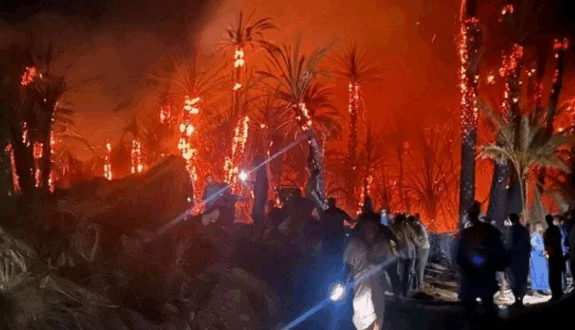 وأكدت أنه تم في هذا الإطار، تسخير عدد من الوسائل اللوجيستية من آليات صهريجية وتجهيزات للإخماد، فضلا عن إنشاء خطوط عازلة لمنع امتداد ألسنة اللهب إلى باقي أجزاء الواحة.