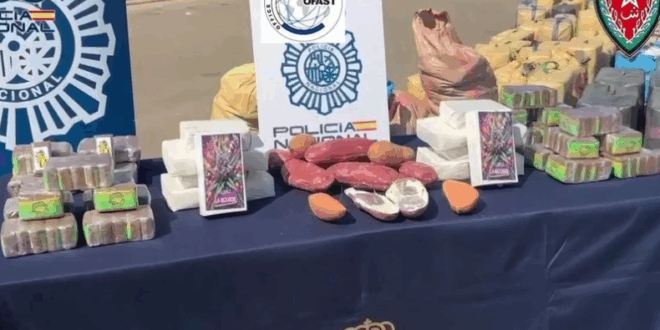 أسفرت عملية أمنية مشتركة بين الشرطة الوطنية الإسبانية، والشرطة القضائية الفرنسية، إلى جانب المديرية العامة للأمن الوطني بالمغرب، عن حجز 15,300 كيلوغرام من الحشيش مخبأة في شاحنة كانت تنقل بطيخا قادمة من المغرب إلى ألميريا.