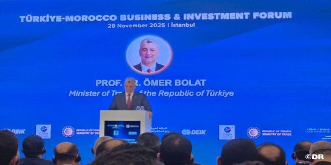 أشاد وزير التجارة التركي، عمر بولاط، بالمشاركة الواسعة في المنتدى المغربي-التركي للأعمال والاستثمار المنعقد الجمعة بإسطنبول، معتبرا أن هذا الحدث يشكل محطة مهمة في تعزيز مسار الشراكة الاقتصادية بين البلدين.
