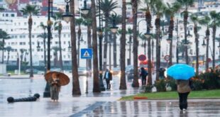 وستكون السماء غائمة جزئيا مصحوبة بأمطار متفرقة فوق سهول المحيط الأطلسي الممتدة شمال الجديدة، ومنطقة طنجة واللوكوس ومنطقة الغرب. أما السهول الأطلسية الوسطى والشمال الغربي للأقاليم الصحراوية للمملكة فستشهد تشكل سحب منخفضة كثيفة مرفوقة بقطرات مطرية جد خفيفة.