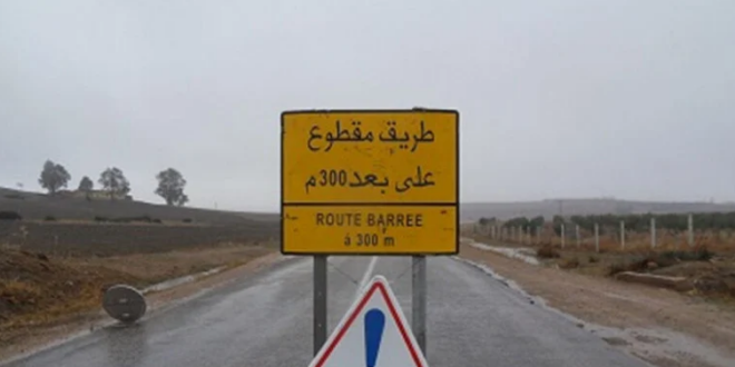 أعلنت وزارة التجهيز والماء اليوم الأربعاء أن حركة السير مقطوعة مؤقتا بالطريق الوطنية رقم 2 بين تطوان وطنجة على مستوى جماعة السحتريين، وأيضا بالطريق الوطنية رقم 16 بين تطوان والفنيدق على مستوى جماعة الملاليين ومدارة سانية طوريس التابعة لجماعة المضيق.