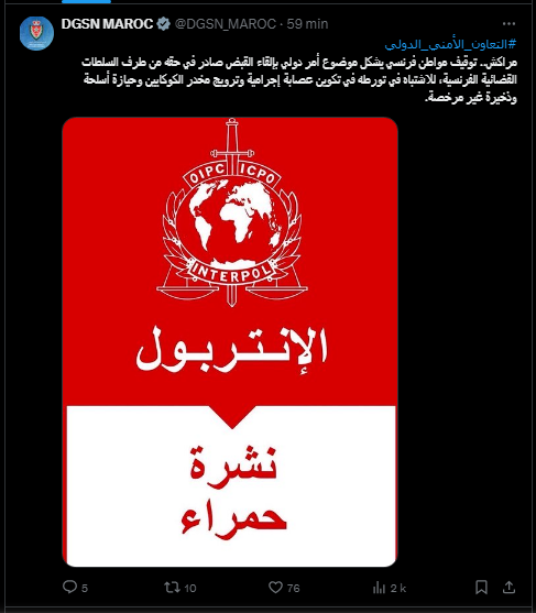أوقفت السلطات الأمنية بمدينة مراكش مواطنا فرنسيا يشكل موضوع أمر دولي بإلقاء القبض صادر عن السلطات القضائية الفرنسية.