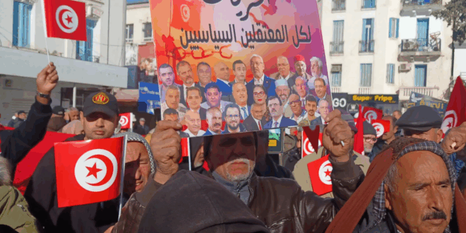 نظم عشرات من أنصار “جبهة الخلاص” المعارضة، مساء السبت، وقفة تضامنية بالعاصمة تونس، للمطالبة بإطلاق سراح “معتقلين سياسيين” في القضية المعروفة إعلاميا بـ”التآمر على أمن الدولة”. بحسب وكالة “الأناضول”.