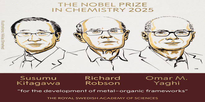 منحت الأكاديمية الملكية السويدية للعلوم، جائزة نوبل في الكيمياء لعام 2025، لكل من سوسومو كيتاغاوا وريتشارد روبنسن وعمر ياغي.