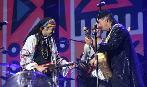 منذ الدقائق الأولى من الأمسية، تمكن المعلمان ناسولي والقصري من جذب انتباه الجمهور الحاضر، من خلال عرض موسيقي جمع بين إيقاعات “الكمبري” وأصواتهما القوية في تناغم تام. وفي مشهد يجسد جسرا حقيقيا بين الأجيال، جاء هذا الحوار الموسيقي بين الأستاذ المعروف ومعجبه الوفي – إذ لطالما اعتبر ناسولي القصري قدوته – ليحتفي بغنى وعمق التراث الكناوي.