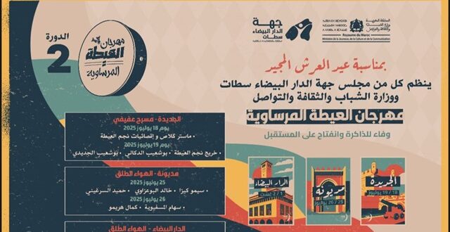 وحسب بلاغ توصل موقع “مشاهد24” بنسخة منه، تحمل هذه الدورة شعار “وفاء للذاكرة والانفتاح على المستقبل”، في خطوة تروم إعادة الاعتبار لفن العيطة المرساوية، باعتباره أحد أبرز الأشكال الفنية التراثية التي نشأت في منطقة الدار البيضاء وأحوازها، وصولا إلى قبائل دكالة.